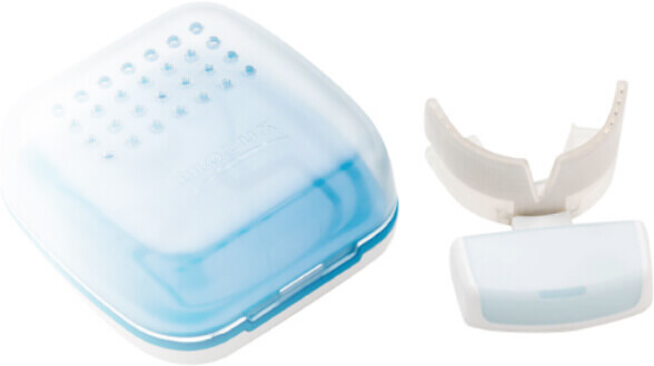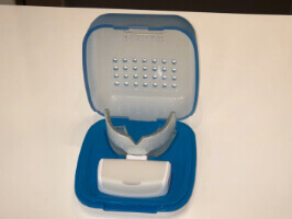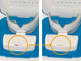 最初は上の歯列に5分間の照射を行います。 5分経過しましたら、照射機を上下をひっくり返し、今度は下の歯列を同じく5分間の照射行います。