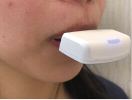 オルソパルスは、矯正治療の装置(ブラケット装置やマウスピース型装置)を歯に装着したままの状態で1日1回照射します。