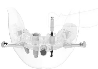 ガイデッドサージェリーとは、患者様のCTデータをもとに専用のコンピューターソフトを使ったシミュレーションで、インプラントを埋め込む適切な位置や角度、深さを診断・決定し、その治療計画通りに正確に行う手術、またはそのシステムのことをいいます。手術用のテンプレートを作製し、患者さまの歯肉に装着することで、的確な位置と角度でインプラントを埋め込むことが可能となります。