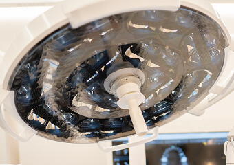 「無影灯」を設置することで、手元に影が映らず明るくはっきりと患部を見ることができる為、正確な処置を行うことが可能です。歯茎の細かい処置など、様々な場面で活躍します。手術時間の短縮にも繋がり、患者様にかかる負担の少ない手術を行うことが可能になります。