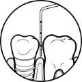- インプラント周囲粘膜炎など、インプラント周囲溝からバイオフィルムを除去していきます。